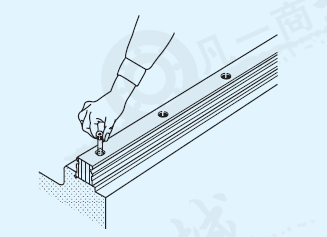 · 用壓板或緊固螺釘使直線導軌Ⅰ的滑軌安裝基準面貼緊底座的安裝基準面,擰緊同一位置上的固定螺栓。從一端起反復用該方法依次將滑軌固定。