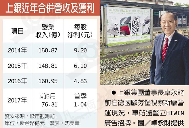 上銀集團(tuán)董事長(zhǎng)卓永財(cái)很早就預(yù)告,上銀第2季出貨優(yōu)于首季,昨日公布自結(jié)5月合并營(yíng)收16.9億元,再度改寫單月營(yíng)收新高,年增14.04%;1至5月合并營(yíng)收76.31億元,年成長(zhǎng)31.78%,創(chuàng)同期新高。卓永財(cái)認(rèn)為,上銀每次參展,訂單都是堆迭性成長(zhǎng),各行各業(yè)看到上銀HIWIN攤位展出機(jī)器人、次世代智慧滾珠絲桿、直線導(dǎo)軌等產(chǎn)品,下一次研發(fā)創(chuàng)新產(chǎn)品,就會(huì)找上銀合作。