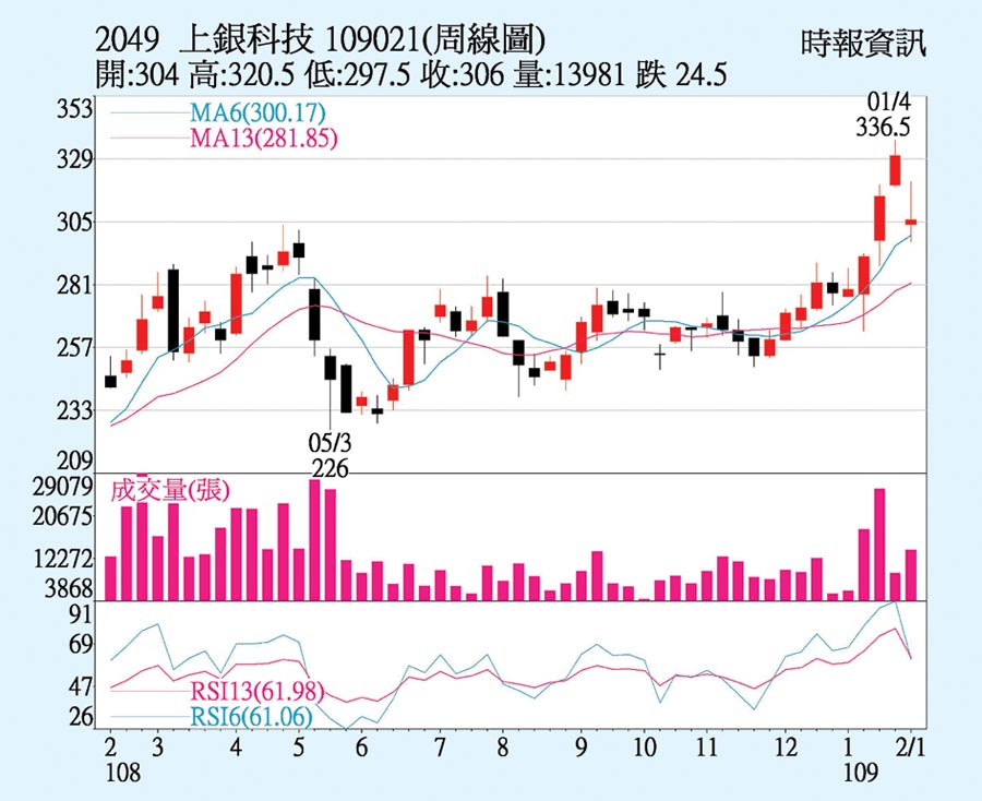 上銀(HIWIN)因美系外資預(yù)期農(nóng)歷年后,大陸線性導(dǎo)軌等傳動(dòng)系統(tǒng)組件及自動(dòng)化設(shè)備需求增溫而可受益,股價(jià)可望出現(xiàn)補(bǔ)漲行情,將投資評(píng)等調(diào)升至加碼,目標(biāo)價(jià)從255元上調(diào)至410元。
