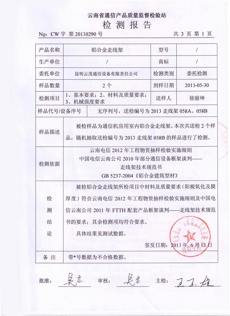 鋁合金走線架檢測報告1