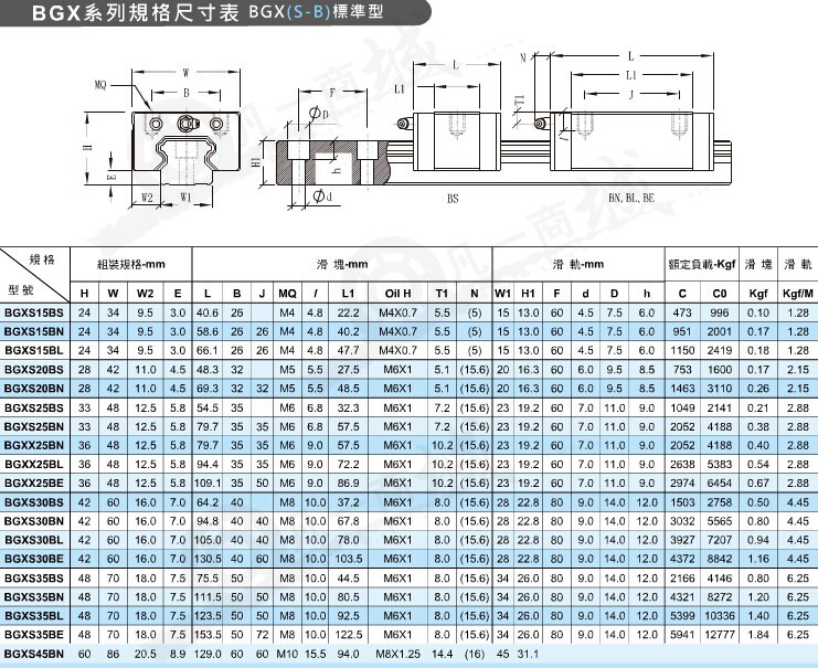 STAF導軌滑塊BGX系列: